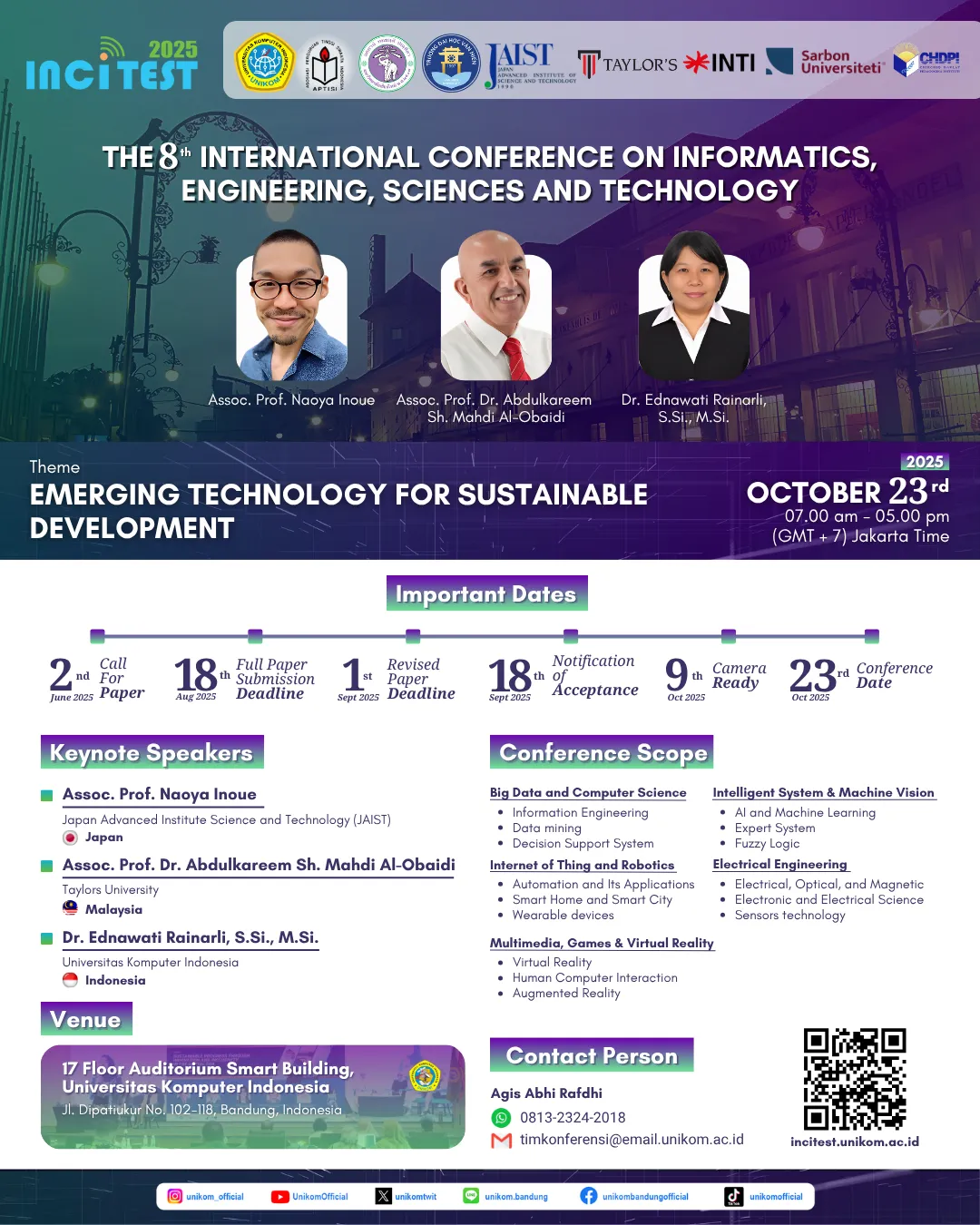🌍✨ The 8th International Conference on Informatics, Engineering, Sciences, and Technology (INCITEST 2025) Returns!